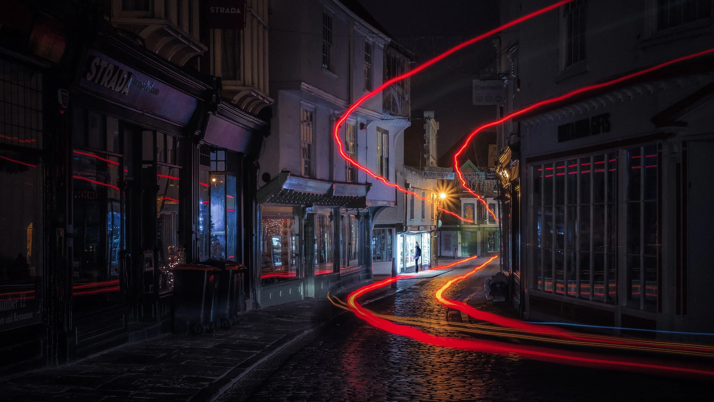 Back out again at 6am for some early shots around Canterbury, and it's another crisp winter morning. I walked down the High Street then along Mercery Lane to reach the cathedral, and found the square at the top of Sun Street eerily dark. At this time of the morning there were only a few brave souls around, and one kind chap stood staring at something in a shop window for long enough to register in the image.