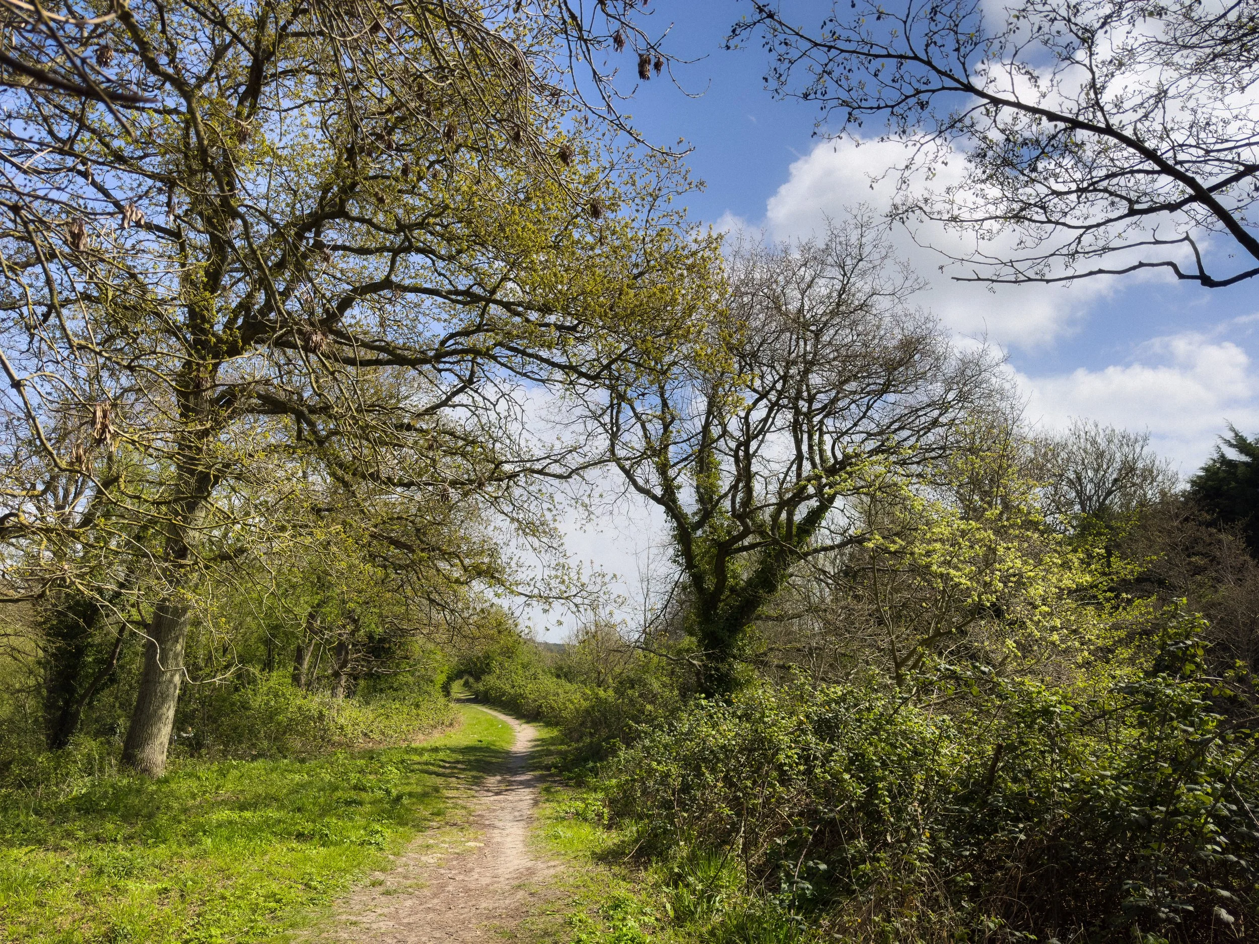 The descent from the high ground leads eventually down towards Lympne and the edge of the Romney Marsh, where the route picks up the Royal Military Canal heading east towards Hythe. The canal runs for 28 miles between Seabrook near Folkestone and Cliff End near Hastings, following the line of the old cliff that once marked the edge of the sea before the marsh silted up. Construction began at Seabrook on 30 October 1804 — the same year Folkestone's harbour Act was passed — conceived by Lieutenant-Colonel John Brown of the Royal Staff Corps as a defensive barrier to prevent French forces from using Romney Marsh as a bridgehead. It was completed in April 1809 at a total cost of £234,000, by which point the threat of Napoleonic invasion had receded; Nelson had died at Trafalgar in 1805, and the canal never saw the military purpose it was designed for. It was opened instead to barge traffic and a passenger service between Hythe and Rye, and remained in commercial use until the Ashford to Hastings railway took most of the traffic in 1851. It is now, for most of its length, a quiet and beautiful waterway, the towpath shaded by willows and the water reflecting the sky above the flat marsh. After the morning's exertion on the hills, the flat kilometres along the canal felt like a different kind of walking entirely — the legs still tired from the climb, but the gradient finally on our side.