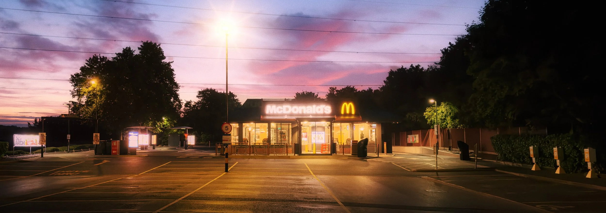 Friday. I was up and about very early; sleep was doing its best to evade me. As the sky began to brighten, I headed out for a drive to make the most of the twilight and take some dawn photographs. My favourite is this 6x17 image of a deserted drive-thru in Canterbury, heavily Inspired by the amazing work of American photographer Nick Carver.