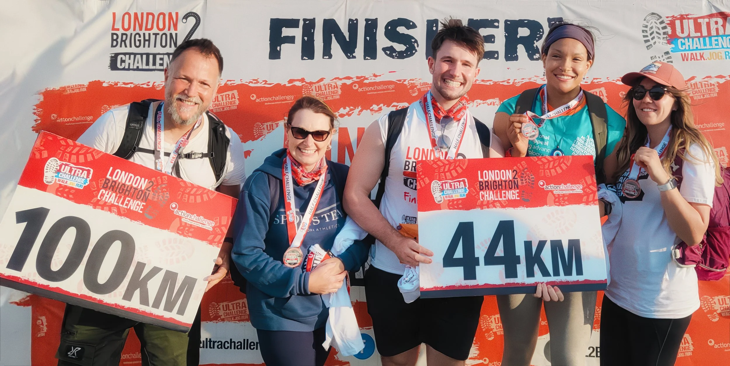 Crossing the line as a five was the right way to end it. Medals, distance cards, and a burger and chips from the event catering followed, and then a taxi back to Felbridge to collect the cars for the drive home.