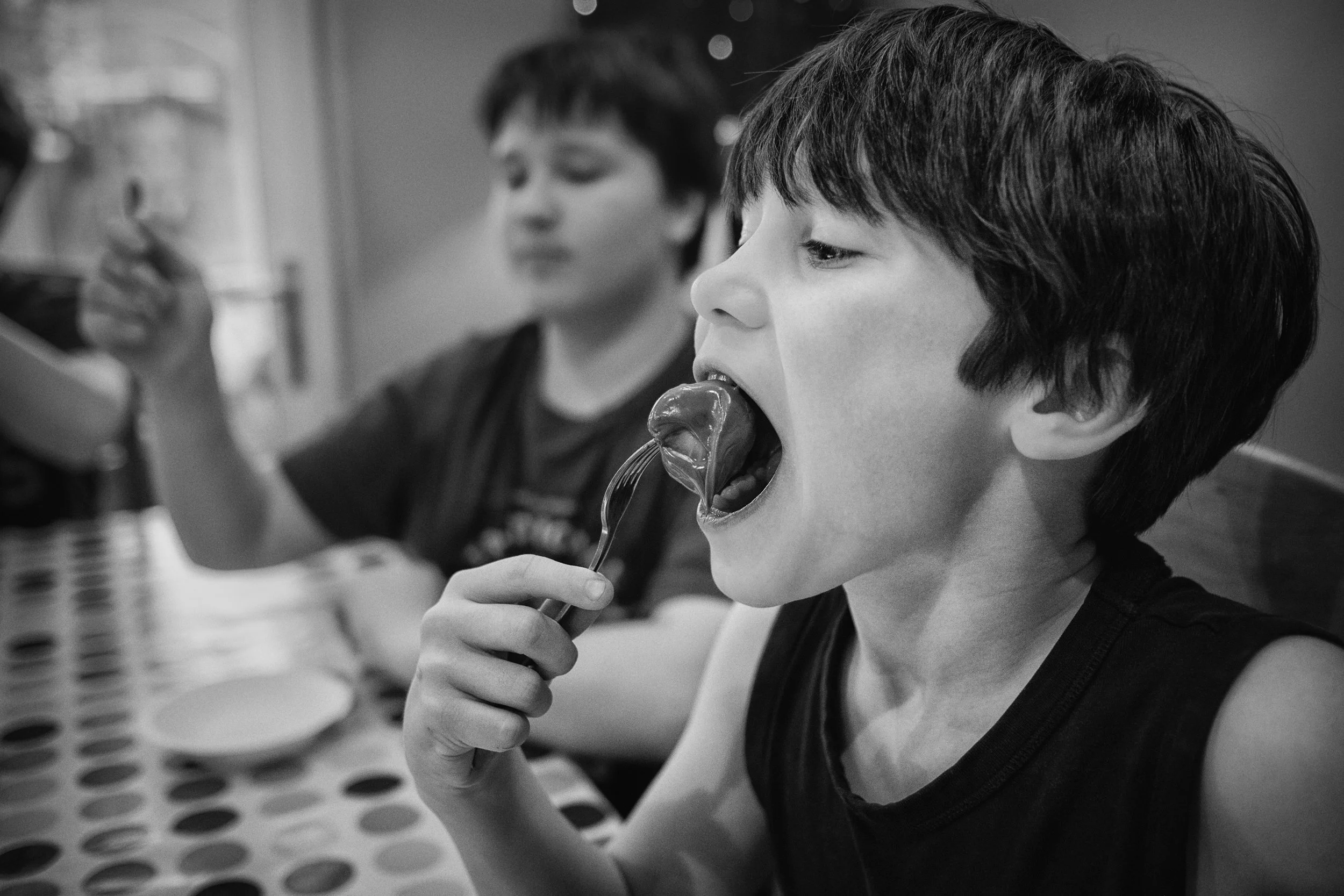 Later in the evening, we used all the leftover Easter eggs and melted them into a chocolate fondue. Vanessa bought marshmallows, shortbread, strawberries, and bananas to dip into the chocolate. Unsurprisingly, this went down very well! I particularly liked this image of Gubs trying to fit an enormous marshmallow smothered in chocolate into his mouth in one piece.