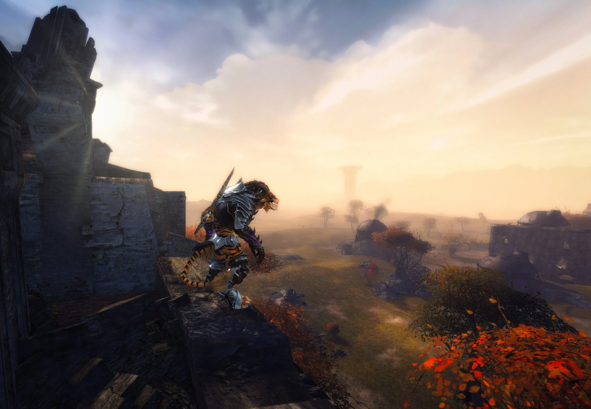 Several notable locations on the Plateau carry specific lore hooks that broaden the context of Ascalon. Old Holtimm Abbey and other ecclesiastical ruins mark the spread of human religious institutions into what was once securely Charr land, and their current state reflects the reversal of fortunes since the Searing and the Charr reconquest. The Old Grendich Aqueduct and related ruins suggest a higher degree of infrastructure and civil investment during Ascalon’s human height, now partly broken and used only incidentally by Charr forces and adventuring parties. Moorwatch Tower and other defensive outposts show how Charr command structures have repurposed older strongpoints and constructed new ones to manage threats along the frontier with ghost‑haunted territories to the east and north.