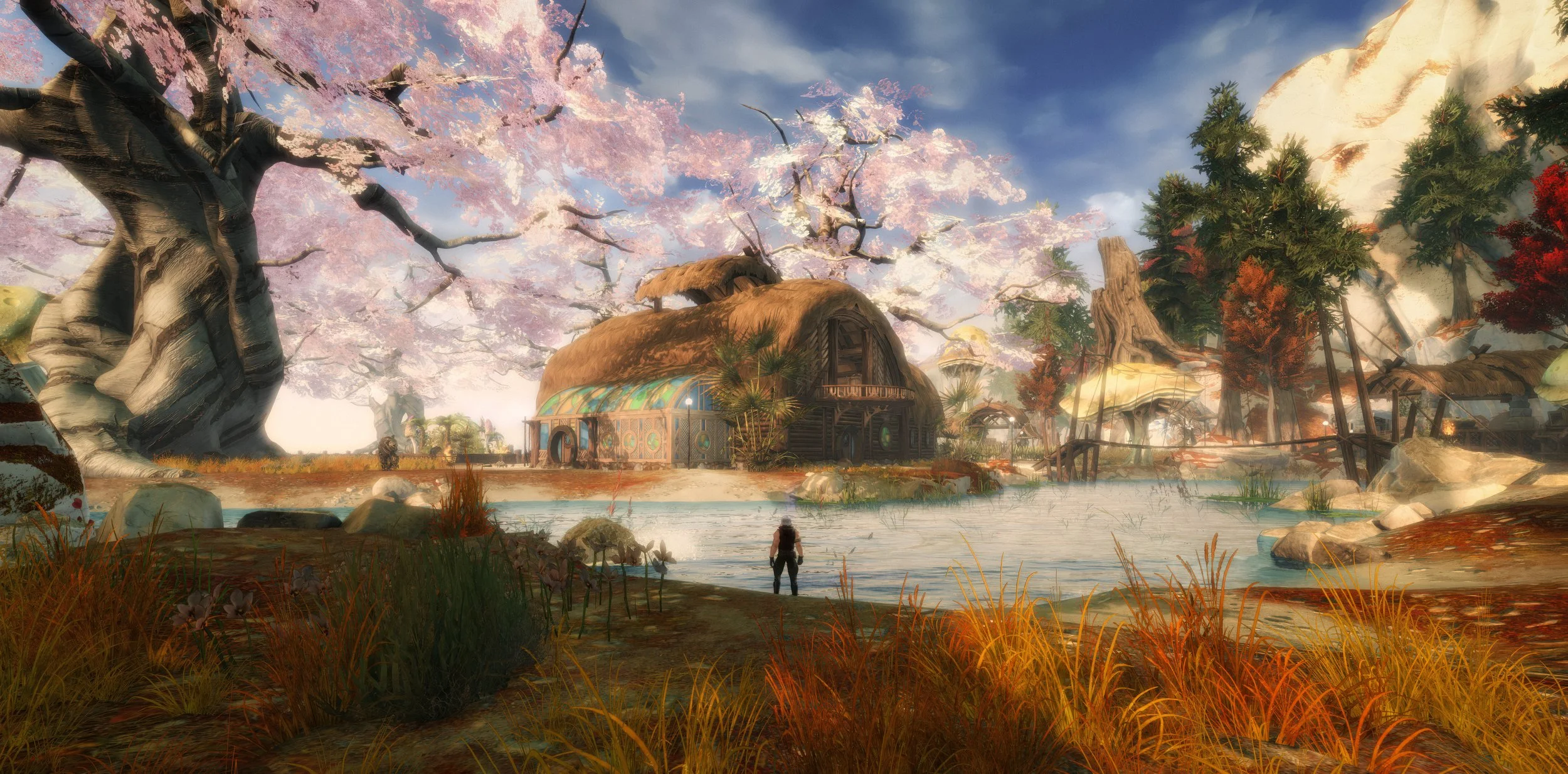 Janthir Wilds launched on 20 August 2024 as the fifth expansion, built around two main maps in the Isles of Janthir, the new spear weapon, and the renewed Warclaw—now Journeykin—alongside homesteads as a third pillar that was always intended to grow over time rather than arrive fully formed. Homesteads unlock early through the story and are fully instanced, with each account getting its own personal map instead of bidding for a plot in a shared district. There is no lottery, no upkeep, and no risk of losing the space if you take a break; the entry door simply appears in the world once you have done the relevant story step, and from that point on, your characters can step through it whenever they like.